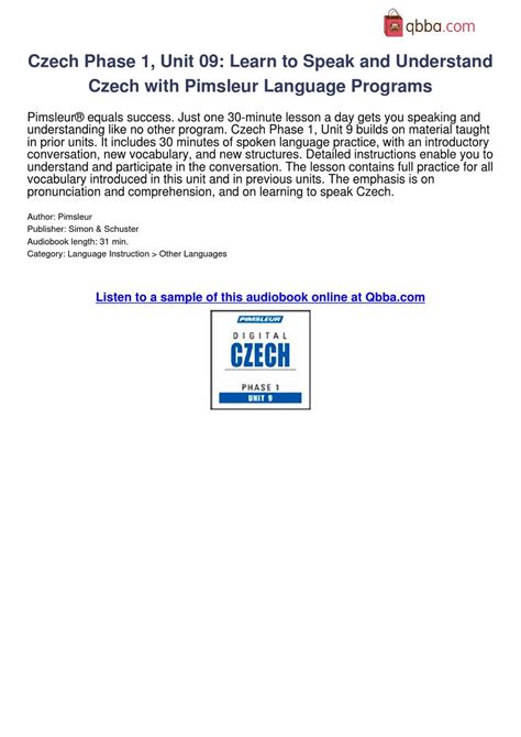 Read Online Czech Phase 1, Unit 16-20: Learn to Speak and Understand Czech with Pimsleur Language Programs Doc